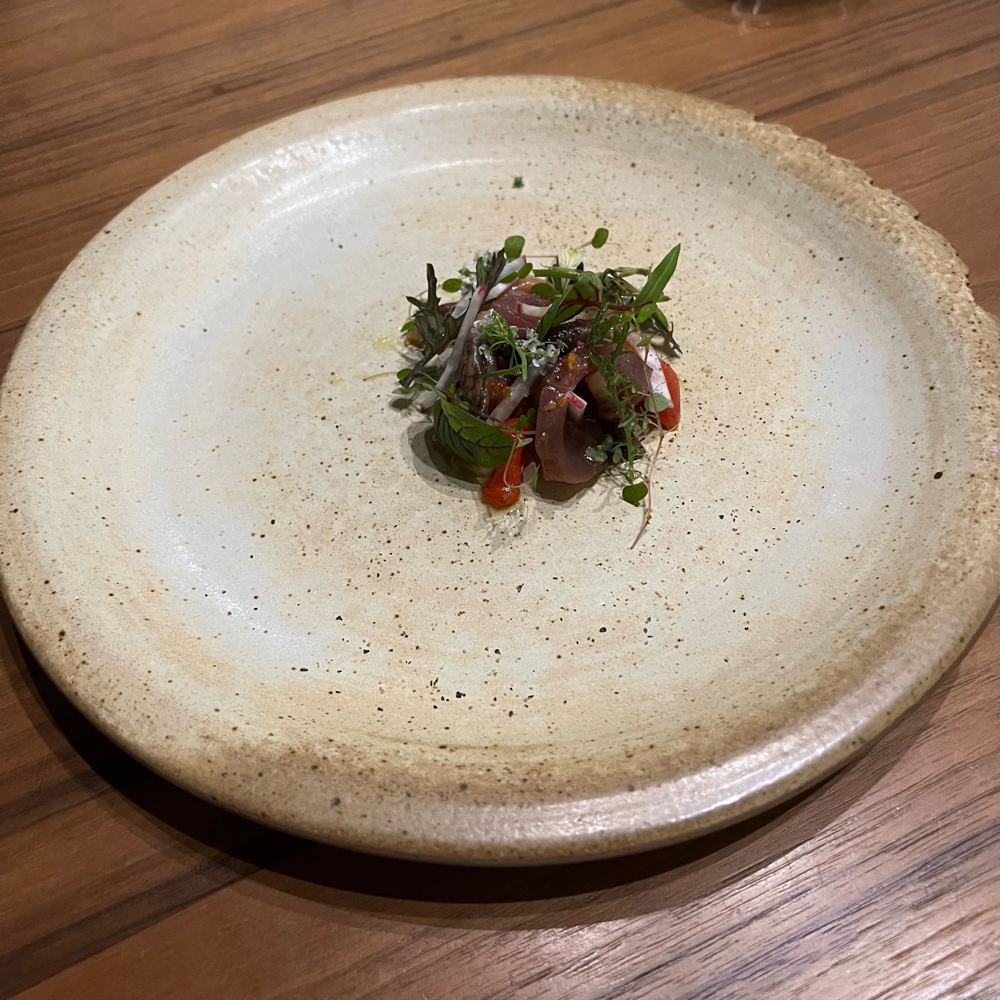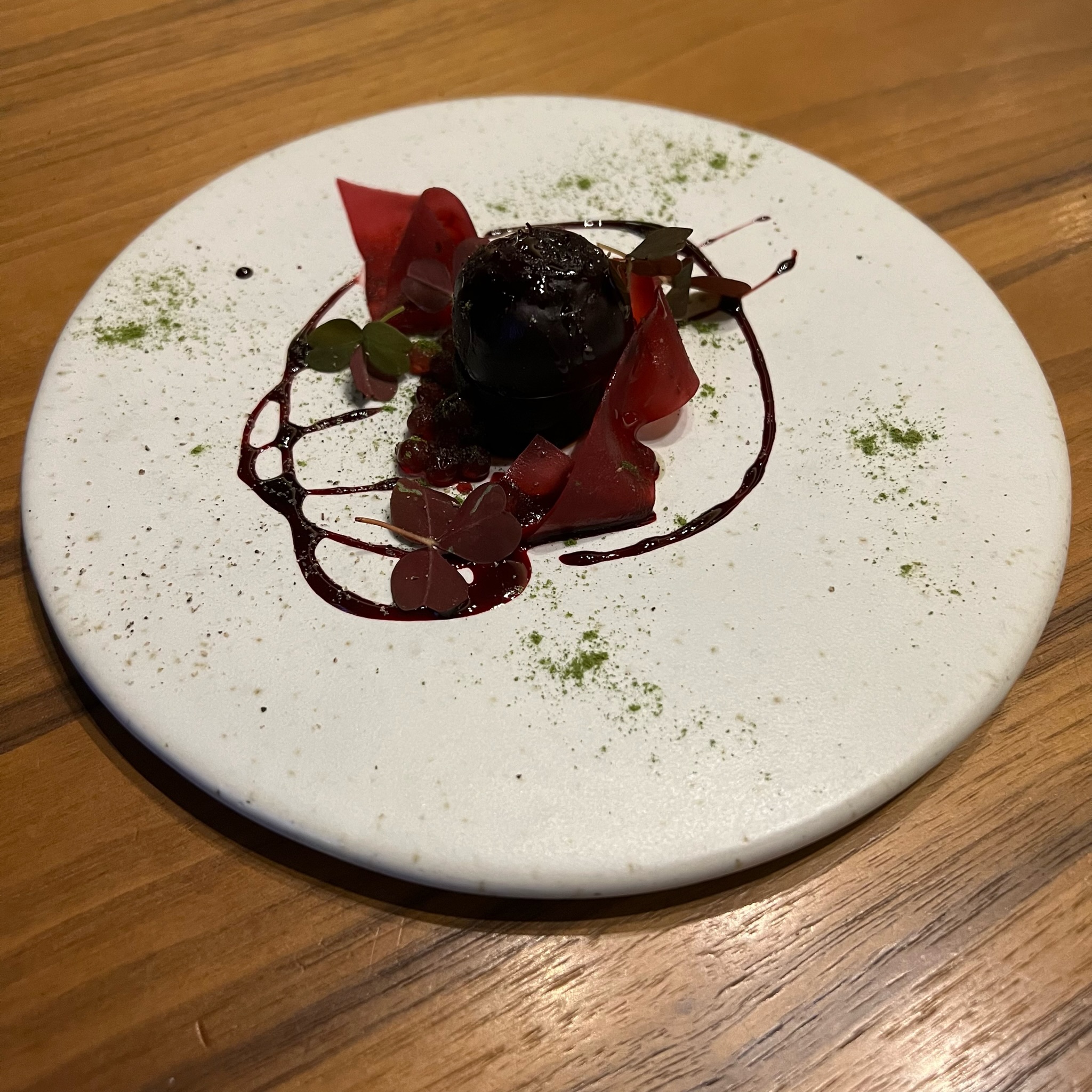 Il y a néanmoins un bémol : la virtuosité des assiettes fut malheureusement gâchée par un rythme de service très lent, beaucoup trop lent. Notre dîner a duré plus de quatre heures (!) pour déguster huit plats. C’est beaucoup trop long. Arrivés à 20h00, nous attendions encore nos desserts à plus de minuit. Tellement fatigués que nous ne les avons pas vraiment appréciés.