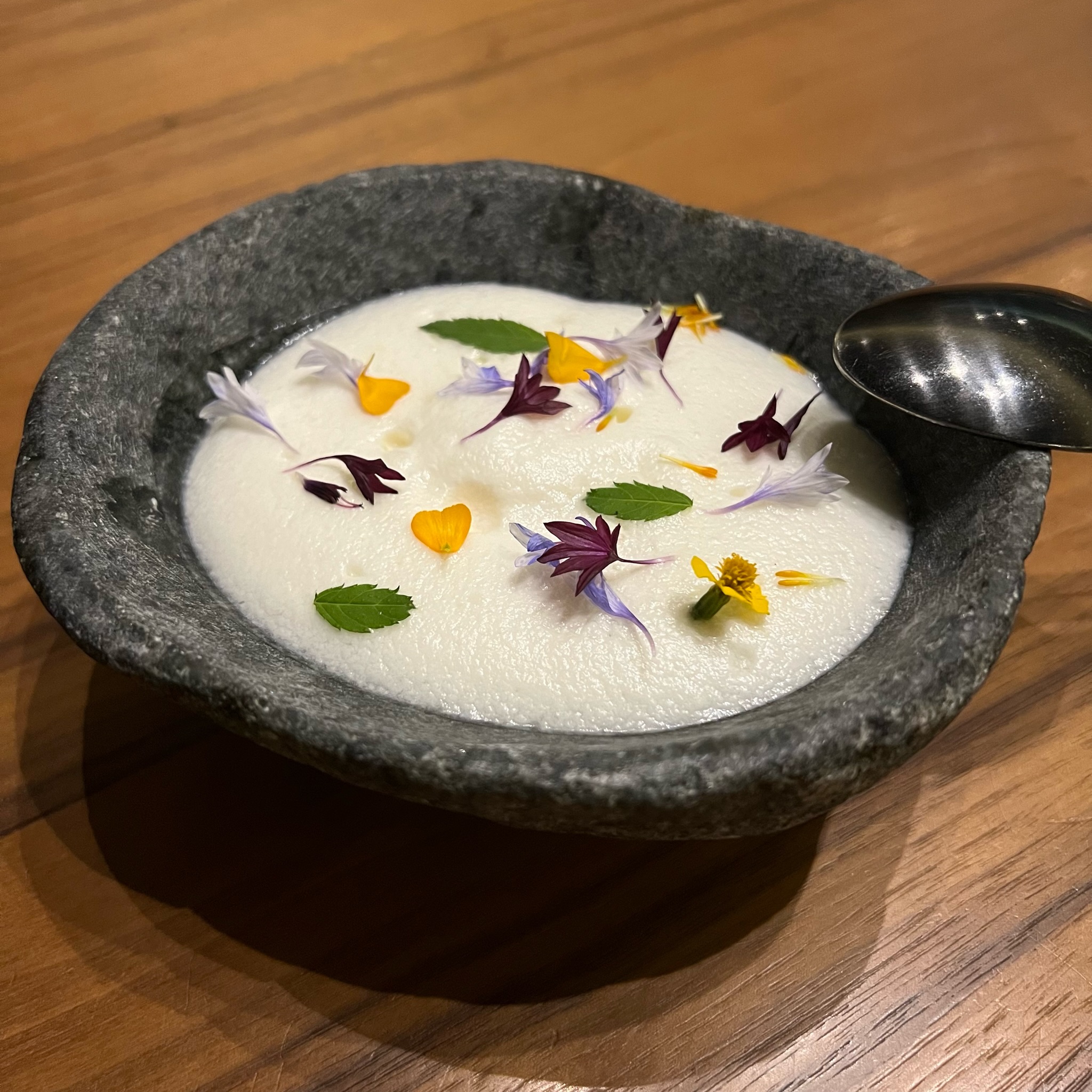 Hedone, à Toulouse, est la table étoilée du chef Balthazar Gonzalez. Un lieu élégant, discret, un peu à l’écart du centre-ville, qui accueille à peine une demi-douzaine de tables et, le soir de notre dîner, une petite quinzaine de convives.
